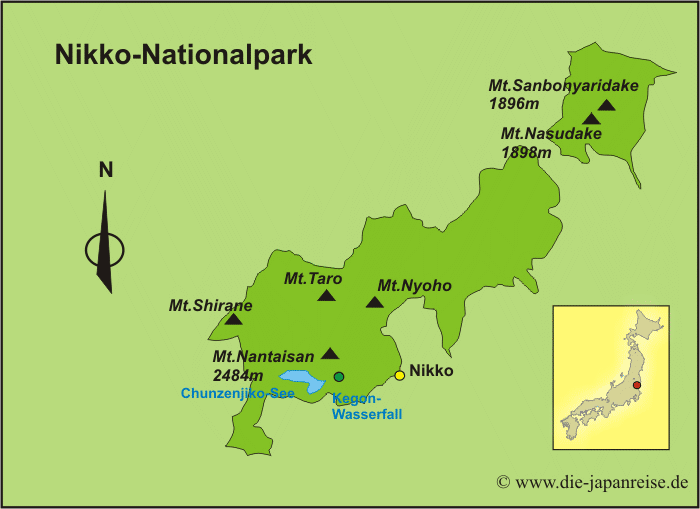 Der Nikko-Nationalpark befindet sich im Zentrum der japanischen Insel Honshu in der Region Kanto, knapp 140 km nördlich von Tokyo entfernt. Gegründet wurde der Nationalpark am 4. Dezember 1934. Der Nationalpark umfasst eine Fläche von rund 180000 ha. Er setzt sich für die Erhaltung der natürlichen Umwelt ein. Hier findet man herrliche Landschaften und eine eindrucksvolle und abwechslungsreiche Natur. Die prächtigen Tempelanlagen, der berühmte Toshogu Schrein, uralte Wälder, weite Moorflächen und die beeindruckenden Wasserfälle bieten sich als ideales Ausflugsziel an. Im Nationalpark Nikko herrscht Gebirgsklima. Somit sind die Temperaturen im Sommer mit durchschnittlich 25 Grad angenehm zu ertragen. Im Winter herrschen hier kalte Temperaturen mit viel Schnee. Somit bietet sich der Nationalpark für Wintersport geradezu an.